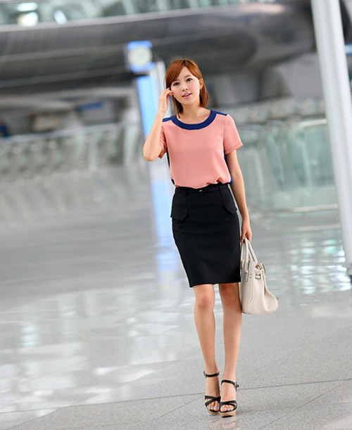 2. Chân váy bút chì mix cùng áo kiểu hoặc áo thun