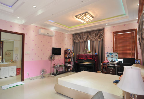 Căn biệt thư mới của gia đình Trang Nhung mới dọn về nằm ngay đường Cộng Hòa, quận Tân Bình, được xây dựng cầu kỳ với rất nhiều phòng, di chuyển bằng thang máy. Nội thất trong nhà được chính tay vợ chồng cô chọn theo phong cách hoàng gia. Mỗi phòng được thiết kế và tô màu phù hợp cung mệnh và phong thủy của từng thành viên trong gia đình. Được biết, cặp vợ chồng thành đạt này đã bỏ ra 100 tỷ để xây dựng căn nhà dạng biệt thự cũng như sắm sửa nội thất sang trọng. Và với một không gian thênh thang như thế này, nhà cô cần 7 người giúp việc để dọn dẹp, lau chùi đồ đạc.