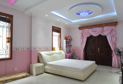 Phòng ngủ của cô con gái áp út với màu hồng lãng mạn, trẻ trung.