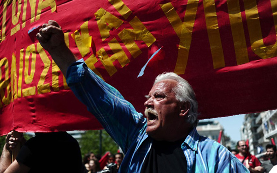 Người biểu tình hét lớn trong cuộc biểu tình ở Athens, Hy Lạp.
