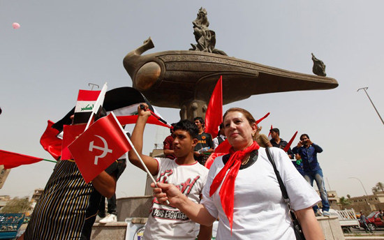 Đoàn người cầm cờ tập trung ở Baghdad, Iraq.