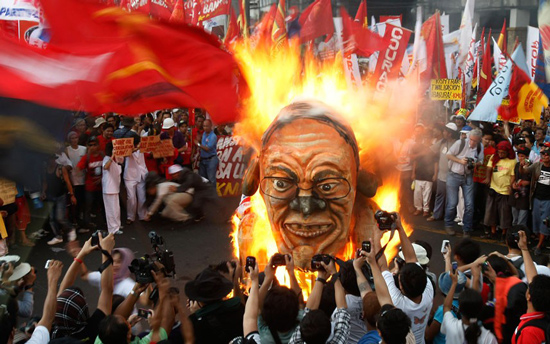 Đốt mặt nạ của Tổng thống Philippines Benigno Aquino trong cuộc biểu tình ở Manila.