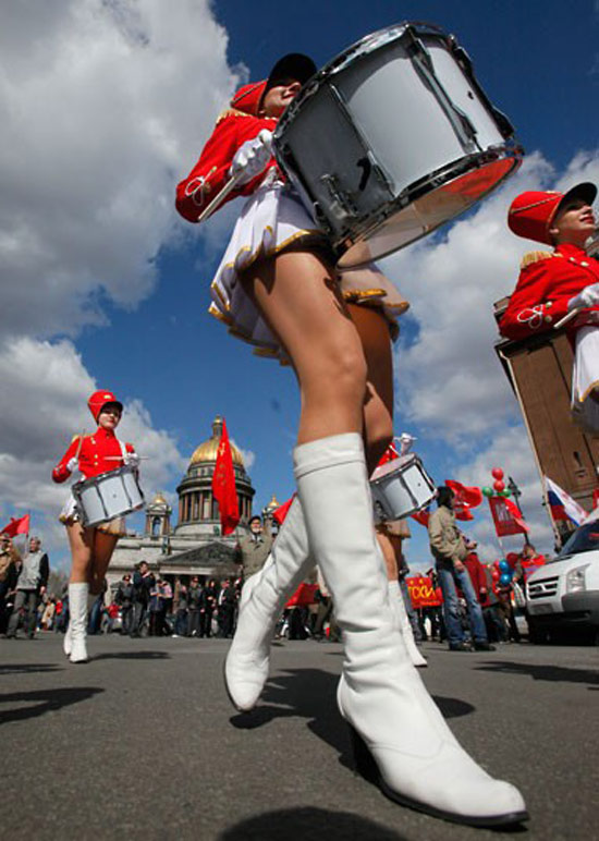 Các cô gái xinh đẹp diễu hành ở St Petersburg, Nga kỷ niệm Ngày Quốc tế Lao động 1/5.