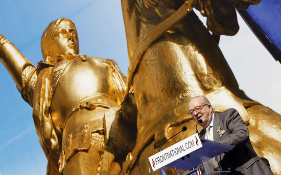 Ông Jean-Marie Le Pen, chủ tịch danh dự của đảng Mặt trận Quốc gia (FN) và là cha của ứng cử viên Marine - Le Pen, phát biểu ở Paris.