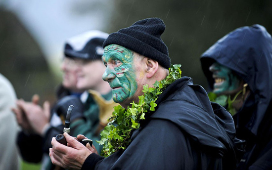 Đoàn người với khuôn mặt sơn đủ kiểu ở Wiltshire, Anh.